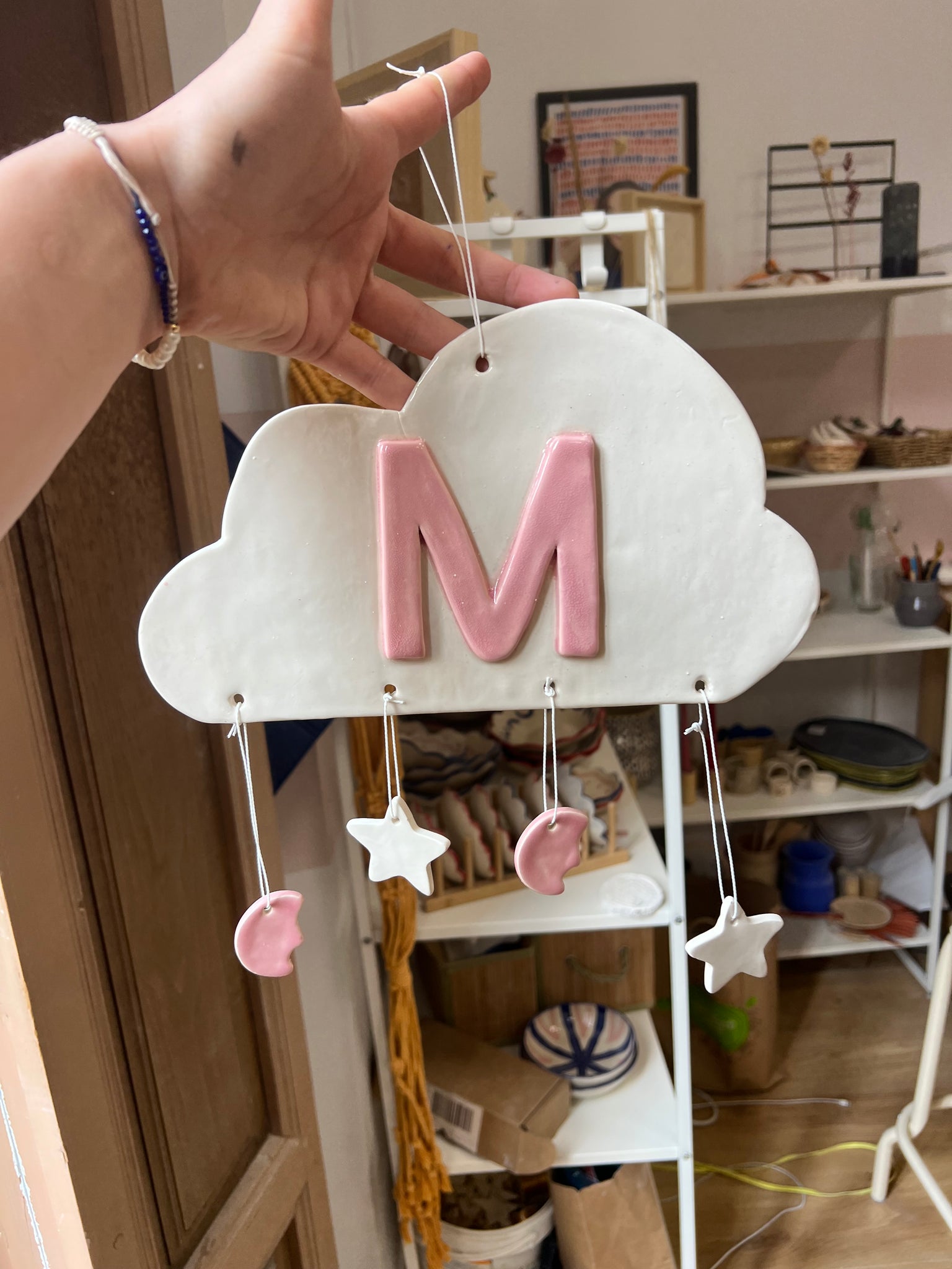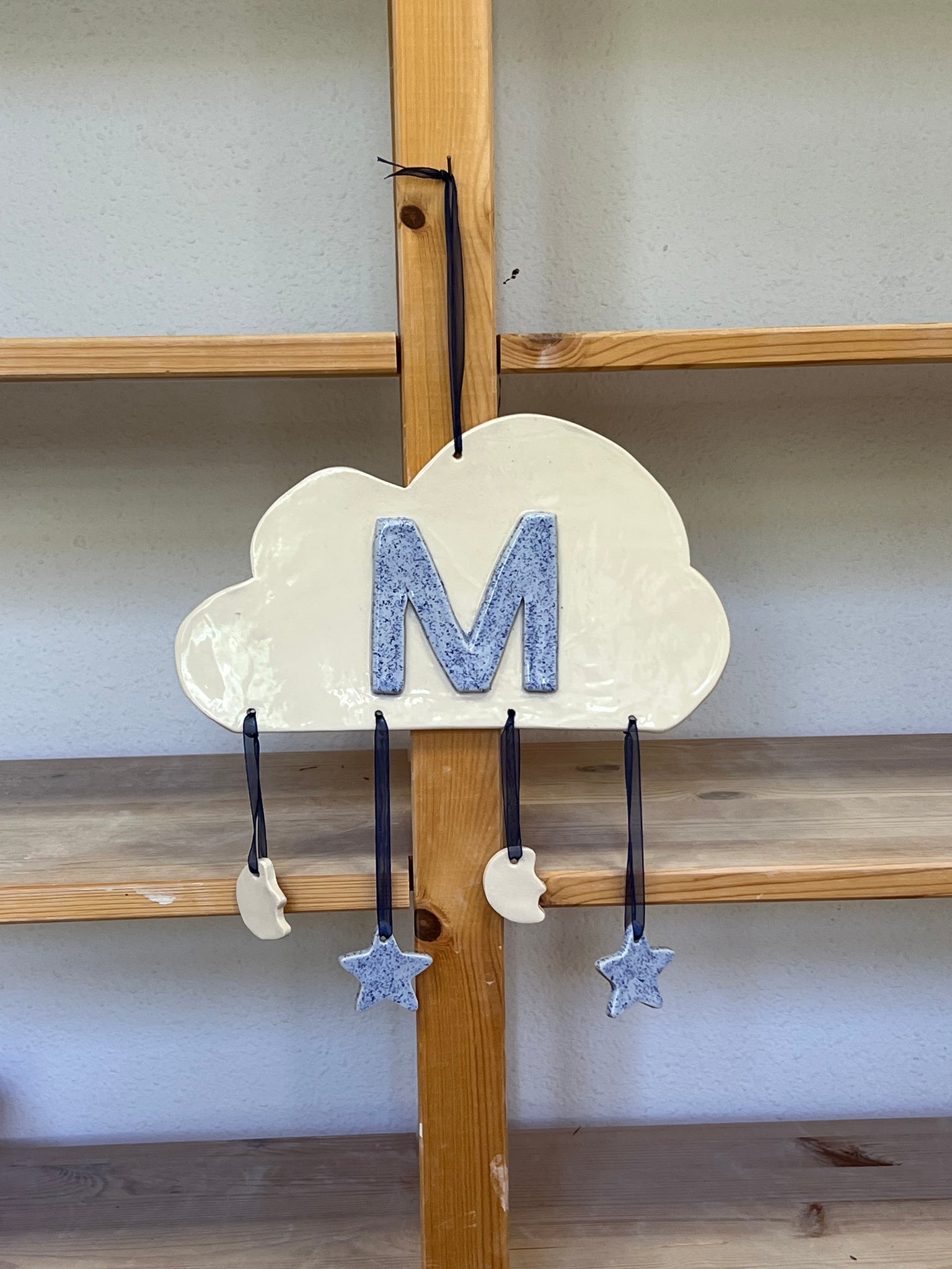 Decorate your little one’s room with a custom cloud with Initial. The color of the initial can be personalized and the type of ribbon as well.